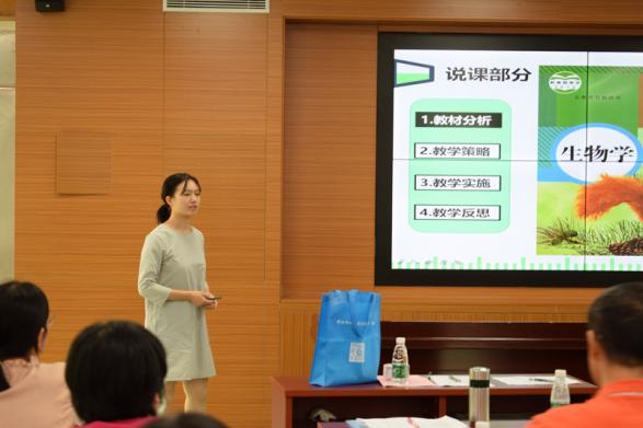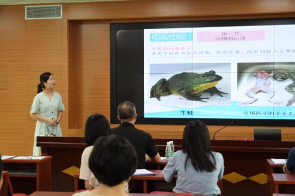 來自容桂外國語學(xué)校的鄧欣欣老師,說課題目為八年級上冊的《探秘牛蛙的運(yùn)動系統(tǒng)的組成》,說課過程充滿激情,通過創(chuàng)設(shè)多個(gè)教學(xué)情境和豐富多彩的活動,激發(fā)學(xué)生的探究欲望。