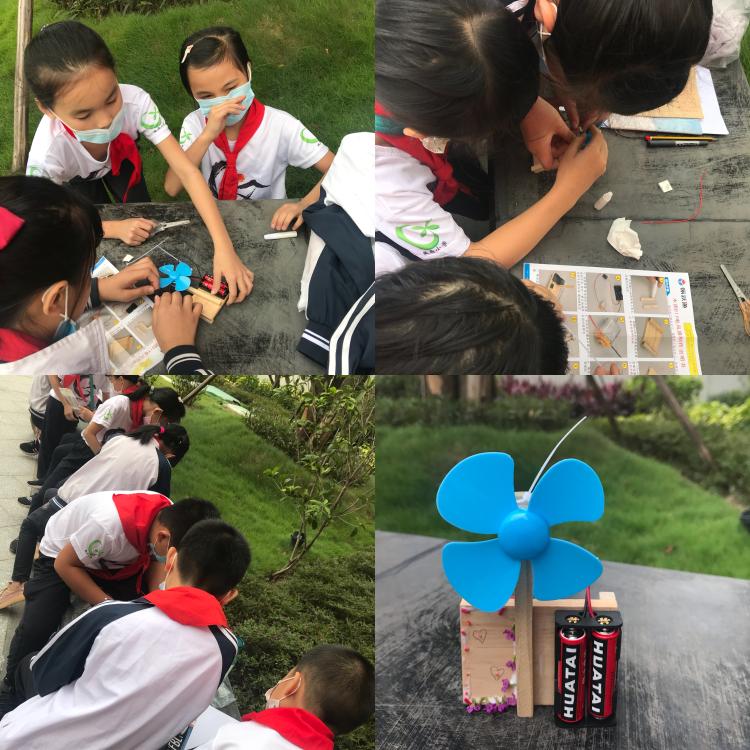 最后同學(xué)們?cè)谛↑S圃小學(xué)老師的示范下開(kāi)始制作小風(fēng)扇實(shí)驗(yàn),學(xué)生們兩人一組合作制作,小組兩人一起研讀說(shuō)明書(shū),既分工合作又親密無(wú)間地快速將小風(fēng)扇組裝起來(lái)。組裝完風(fēng)扇之后,就開(kāi)始創(chuàng)作詩(shī)歌,詩(shī)歌創(chuàng)作完后同學(xué)之間相互交流討論進(jìn)行自我修改。謝志穎主任和黎珍弟老師則針對(duì)學(xué)生修改后的作品進(jìn)行適當(dāng)?shù)狞c(diǎn)撥,進(jìn)行第二次的修改。最后讓同學(xué)們把詩(shī)歌抄在做好的小風(fēng)扇上。