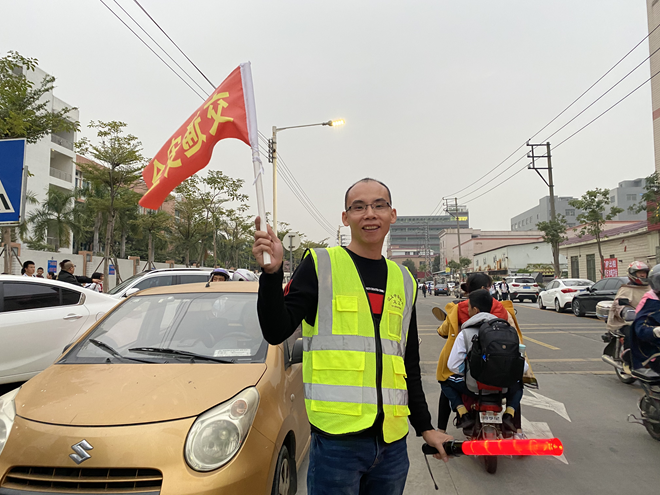護(hù)學(xué)志愿者疏導(dǎo)來往車輛