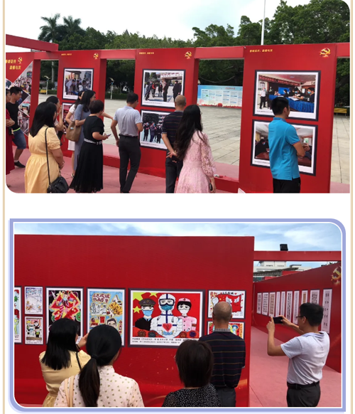 永豐小學(xué)黨支部書記吳凡組織全體黨員來到了展覽區(qū),一起參觀了抗疫工作剪影、抗疫英雄剪影和師生的抗疫主題書畫。偌大的展區(qū),向大家傳達(dá)著戰(zhàn)勝疫情的堅定信念和頑強斗志。