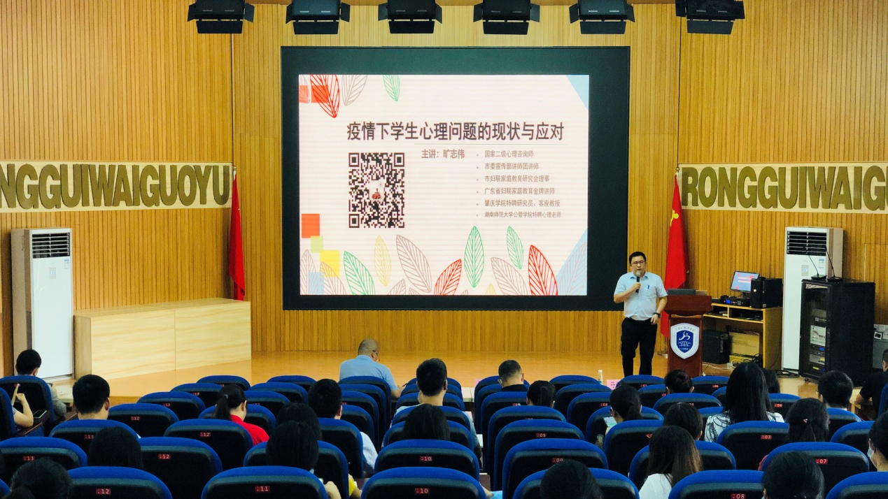 街道教育辦特邀國家二級(jí)心理咨詢師、省婦聯(lián)家庭教育金牌講師、容桂家校和美學(xué)院教育顧問曠志偉教授做《疫情下的學(xué)生心理健康問題現(xiàn)狀及應(yīng)對(duì)》的專家講座。曠教授從“學(xué)生心理問題現(xiàn)狀”、“學(xué)生常見心理問題”、“學(xué)生心理問題的成因”及“應(yīng)對(duì)”四個(gè)方面指導(dǎo)中小學(xué)心育工作者做好學(xué)生心理健康教育工作。