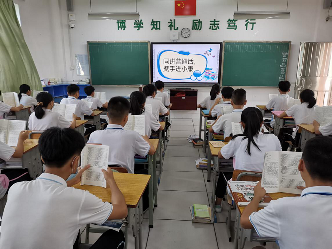 2020年9月14日,我校九年級師生開展“同講普通話,攜手進(jìn)小康”經(jīng)典誦讀活動。