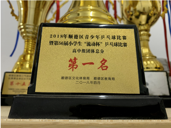 2018年度、2019年度順德區(qū)青少年乒乓球比賽暨56屆小學(xué)生“流動杯”乒乓球比賽高中組團體總分第一名;