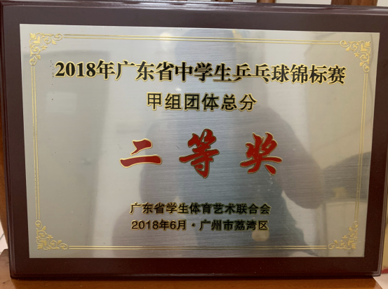 2018年廣東省中學(xué)生乒乓球錦標(biāo)賽甲組團體總分二等獎;
