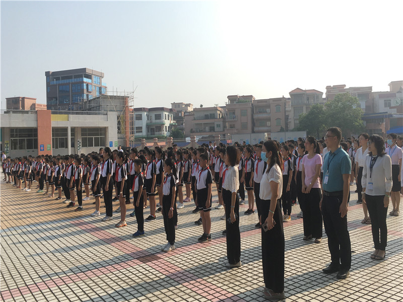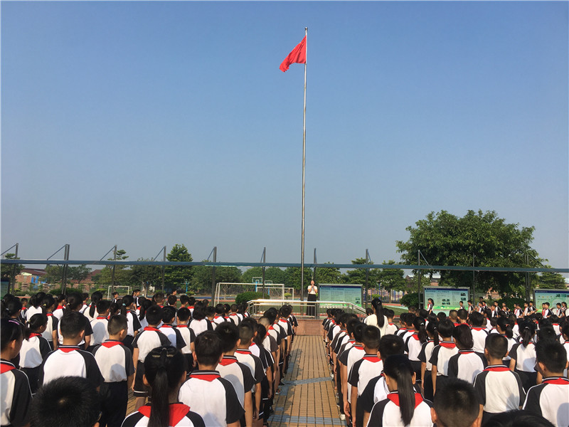 由于場(chǎng)地范圍有限,但是同學(xué)們參加典禮的熱情無限。只見同學(xué)們一個(gè)個(gè)揚(yáng)著笑臉,有序地到指定地點(diǎn)站好,靜待典禮開始,整個(gè)會(huì)場(chǎng)寂靜安然,秩序良好。典禮由麥國才主任主持,首先是升旗儀式,五星紅旗冉冉升起,整齊的隊(duì)禮,莊嚴(yán)的儀式,傳達(dá)出全體師生對(duì)祖國的尊重與熱愛!典禮在莊嚴(yán)的國歌聲中拉開了序幕。