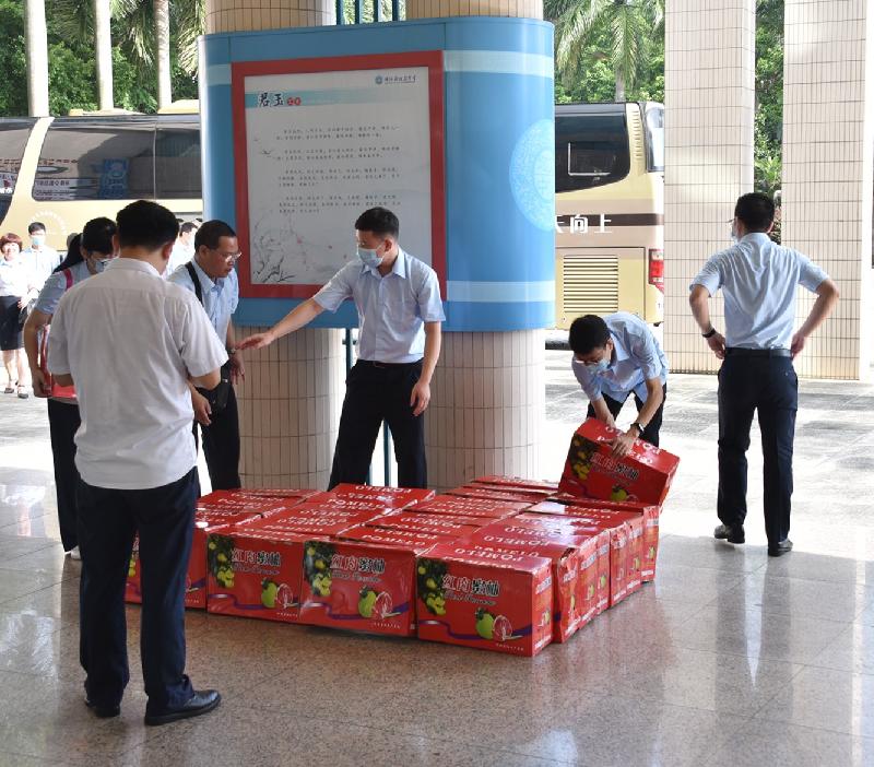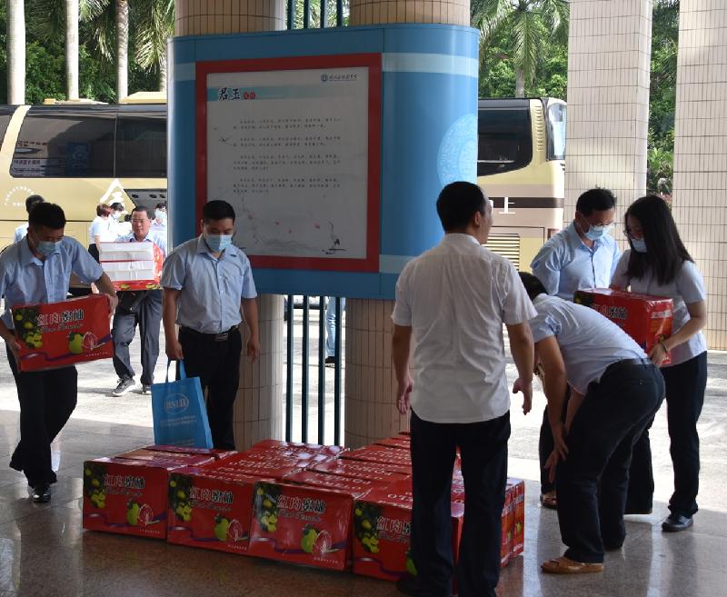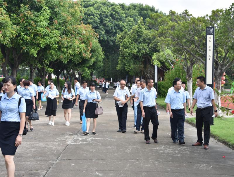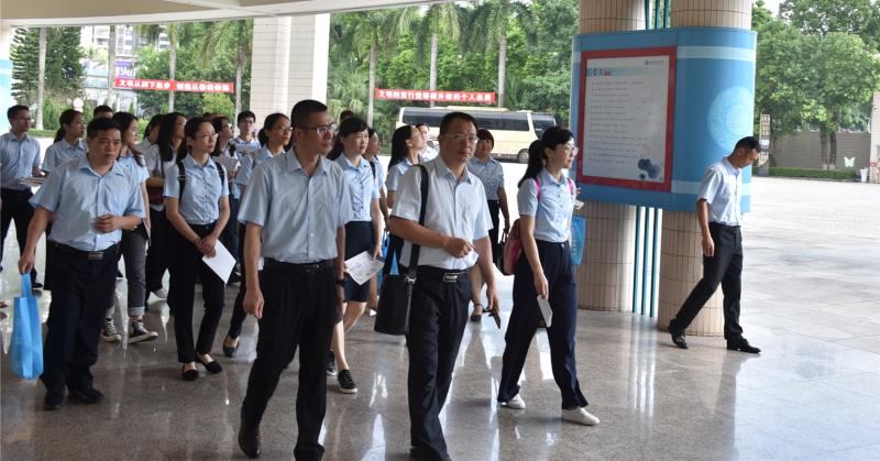 全體行政在大堂迎接來自梅州的同行