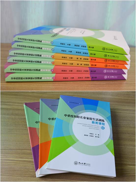 在堅持課程改革,探索特殊教育專業(yè)發(fā)展的道路上,梁敏儀特級教師工作室自2016年起,在王志超教授的專業(yè)指引下,完成了人性化課程系列教材的編寫,分為社會化、體能、情緒分化、言語、劃畫、圖形操作共17本教材,生活育人教材1本。這些教材的編寫意圖就是對學生課上、課下、生活進行統(tǒng)整的課程化的設計,讓學生能夠在學校生活中獲得全程的學習與成長體驗。2019年9月,課程教材交付出版社。2020年,由特級教師梁敏儀擔任主編,工作室成員蔡青、譚曉燕、馮學立、馬海萍、張威林、伍思婷分別擔任副主編的《中重度智障兒童家庭生活訓練教育課程(低、中、高)》教材由中山大學出版社正式出版。