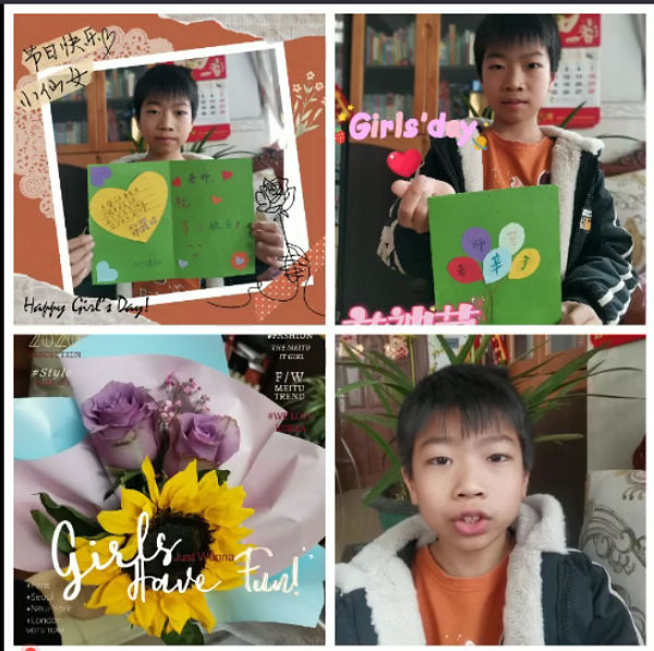 時(shí)光可以暗淡容顏,但帶不走美麗;勞作可以粗糙雙手,但帶不走關(guān)愛(ài)。陽(yáng)春三月,萬(wàn)物復(fù)蘇,在這個(gè)春暖花開(kāi)的季節(jié),一年一度的“三八”國(guó)際婦女節(jié)來(lái)臨了,為了讓少先隊(duì)員學(xué)會(huì)付出、學(xué)會(huì)回報(bào),懂得孝敬、懂得體諒長(zhǎng)輩的良苦用心,羅沙小學(xué)大隊(duì)部現(xiàn)向全校少先隊(duì)員發(fā)出倡議,號(hào)召全體少先隊(duì)員在這個(gè)特殊的節(jié)日里,用自己的行動(dòng)去做一些力所能及的小事情,為媽媽、奶奶、外婆、老師等女性長(zhǎng)輩們獻(xiàn)上他們最真誠(chéng)的祝福!下面我們一起來(lái)看看他們“三八”當(dāng)天,他們都是如何把愛(ài)獻(xiàn)給最美女神的吧!