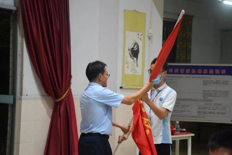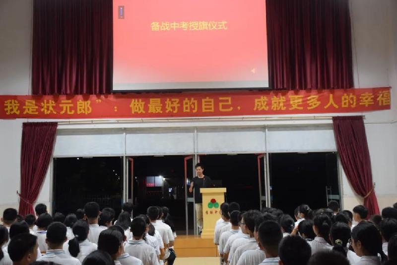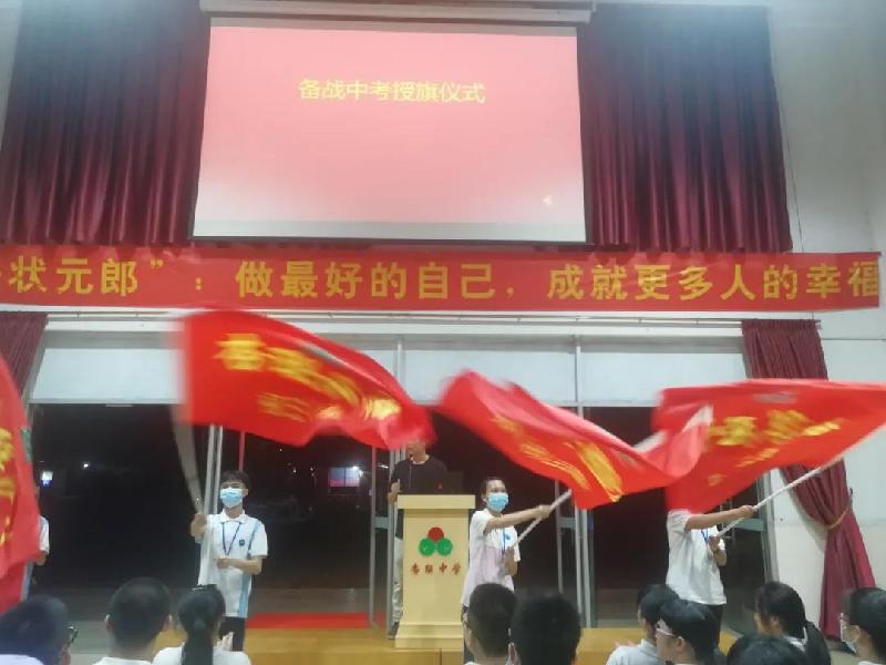 今日,趙平正校長親自為班級授戰(zhàn)旗,愿初三級同學(xué)們謹(jǐn)記誓言: “團(tuán)結(jié)一致,永不放棄!志存高遠(yuǎn),扎實(shí)奮戰(zhàn)!永不言累,定要成功!”