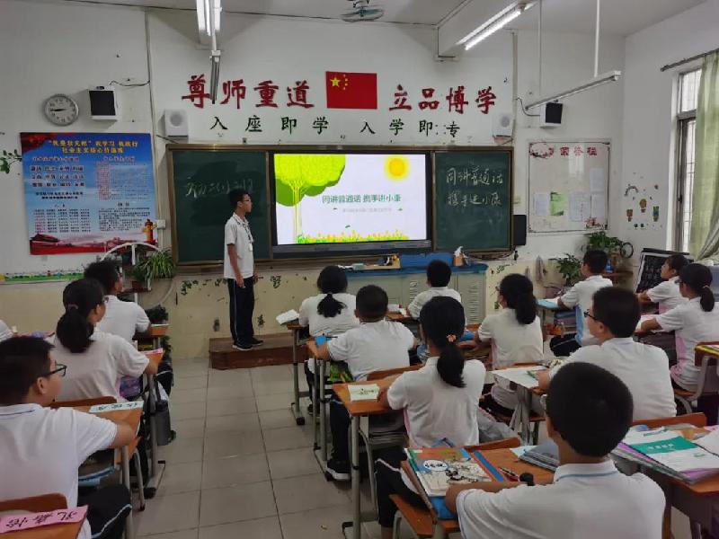 為推進(jìn)國家通用語言文字的規(guī)范和普及,經(jīng)國務(wù)院批準(zhǔn),從1998年起,每年9月份第三周為“全國推廣普通話宣傳周”。推廣周期間,順德區(qū)杏聯(lián)初級中學(xué)以“同講普通話,攜手進(jìn)小康”為主題,開展推廣普通話主題班會、優(yōu)秀推廣普通話手抄報(bào)作品展、經(jīng)典誦讀活動(dòng)、致敬抗疫英雄演講活動(dòng)等一系列推廣宣傳。