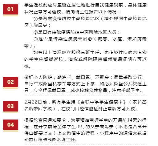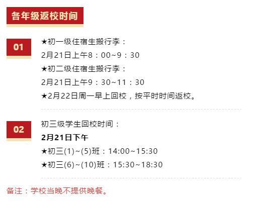 隨后,李副校長從疫情防控期體溫檢測、佩戴口罩、歸校路線、車輛停放、疫情防控期間實行錯峰搬運行李等方面強調(diào)了學(xué)生開學(xué)歸校的注意事項,并作出了以下返校時間安排: