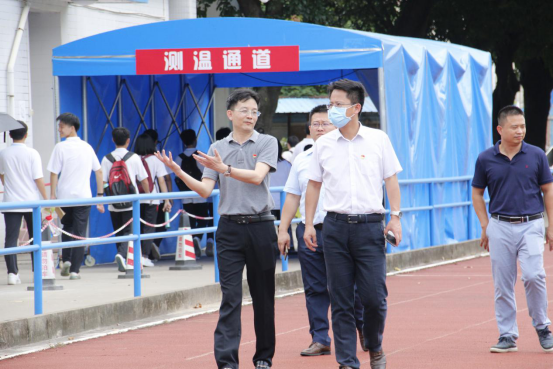 2020年7月2日,順德區(qū)委副書記、政法委書記王勇,區(qū)委辦常務(wù)副主任杜友華,順德區(qū)教育局局長閔樂萍一行3人蒞臨羅定邦中學,對2020年高考考點防疫工作開展專項督查,我校校長熊文華帶領(lǐng)學校行政陪同檢查。