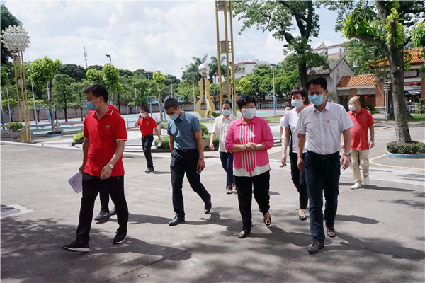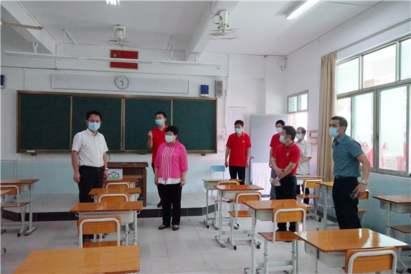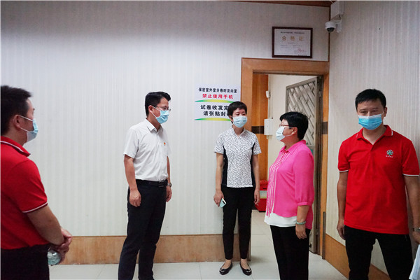 7月2日上午,順德區(qū)區(qū)委副書記、區(qū)政法委書記王勇、區(qū)教育局局長閔樂萍一行到容山中學(xué)開展高考防疫專項督查工作。容山中學(xué)校長、考點主考區(qū)淑玲及相關(guān)行政陪同領(lǐng)導(dǎo)到校園相關(guān)高考功能場室進行巡視。