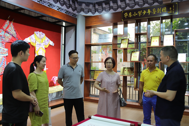 隨后,三人參觀了我校的粵劇展覽室,了解華東小學(xué)粵劇項(xiàng)目的不斷發(fā)展、不斷壯大的成長(zhǎng)歷程,并對(duì)學(xué)校和孩子們?nèi)〉玫某煽?jī)贊不絕口。作為華東小學(xué)粵劇少兒藝術(shù)團(tuán)的名譽(yù)團(tuán)長(zhǎng),倪惠英女士和李漢銓先生還為學(xué)校在這個(gè)項(xiàng)目的發(fā)展指明新的方向。