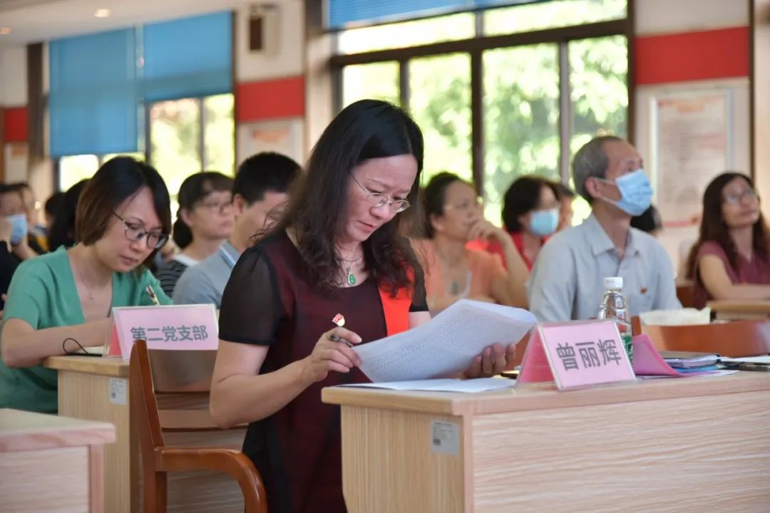 順德區(qū)教育局黨組成員、副局長(zhǎng)張毅,組織人事科副科長(zhǎng)曾麗輝以及我校全體黨員參加了會(huì)議,會(huì)議由張毅副局長(zhǎng)主持。