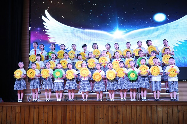 伴隨著收獲的喜悅,以“感恩有您――回憶童年――童夢(mèng)起航”為線(xiàn)索的“童暢畢業(yè)秀”精彩綻放?!陡卸鞯男摹肥终Z(yǔ)舞、《感恩母?!吩?shī)歌朗誦、《少年》班級(jí)大合唱、《芒種》歌舞等,六年級(jí)各班精心準(zhǔn)備的節(jié)目讓我們看到了“至誠(chéng)至真”的童心少年風(fēng)采,演繹著一份最美的記憶――在童心城小遇見(jiàn)最好的自己!