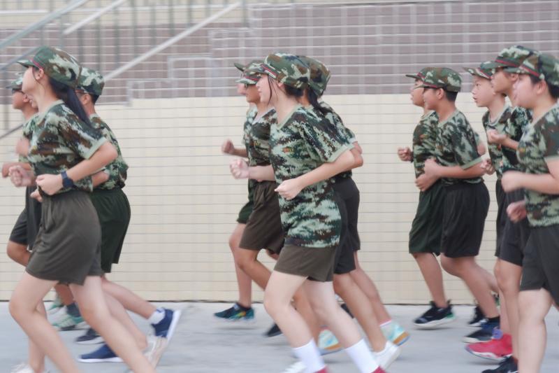 開營結(jié)束后,杏聯(lián)中學(xué)全體參加實踐活動的新生迎著9月的驕陽,立即投入到了緊張的訓(xùn)練中。酷日下,一張張稚嫩的臉龐上洋溢著朝氣,明亮的眼神里流露出堅毅。