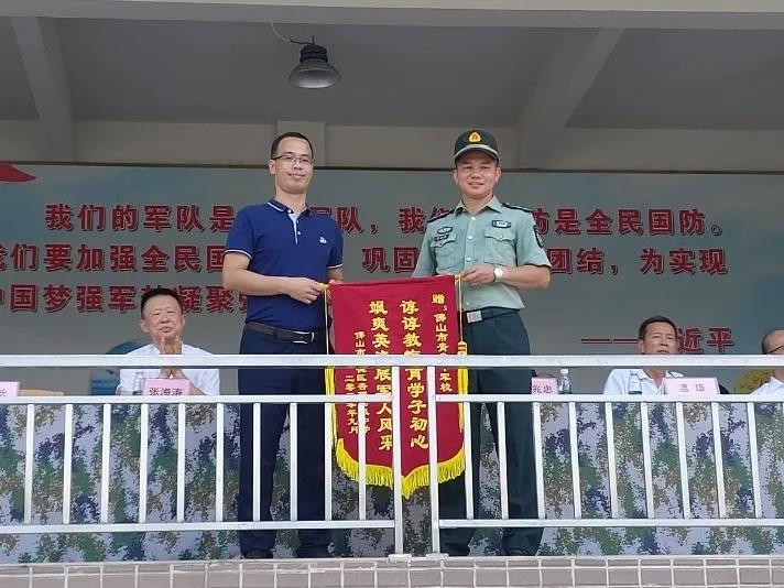 隨后,分別舉行了“順德區(qū)青少年國防教育基地”掛牌儀式和“順德區(qū)愛國擁軍促進(jìn)會單位會員”授牌儀式。杏聯(lián)中學(xué)李華長副校長和佛山市青少年軍校校長李志強互贈紀(jì)念品和錦旗。