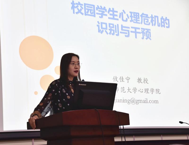 隨后,攸教授從“如何識別”和“如何應對”兩方面著手,澄清了外界對自殺的謬誤,細致地講述預防自殺事件的具體做法。其中,攸教授特別指出自殺是學生求救的重要訊號,教師應認真對待所有的自殺訊息,及早識別自殺的征兆;班主任和科任老師在識別自殺征兆環(huán)節(jié)中有著明顯的優(yōu)勢,教師應與家長成為同盟軍,發(fā)揮各班心理委員的作用。