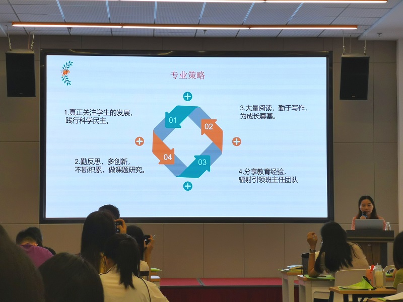 首先,廣東省名班主任歐璐斯用自己的親身經(jīng)歷闡述了在“探索期-成熟期-發(fā)展期”應(yīng)如何一步步確立職業(yè)理想、調(diào)節(jié)心理狀態(tài),體會(huì)作為一名班主任的幸福感。歐主任的現(xiàn)身說(shuō)法鼓舞了每一位在場(chǎng)的班主任,讓人真切地感受到“你若盛開,蝴蝶自來(lái)”!