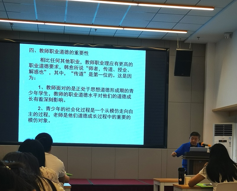 最后,廣東省人民政府教育顧問(wèn)、華南師范大學(xué)張俊洪教授為在場(chǎng)班主任作了“新時(shí)代教師職業(yè)道德建設(shè)新樣態(tài)”專題報(bào)告。張教授用豐富的人生經(jīng)歷,簡(jiǎn)約而不簡(jiǎn)單的語(yǔ)言講述了新時(shí)代教師職業(yè)道德面臨的現(xiàn)狀、挑戰(zhàn)以及作為一名教師應(yīng)有的堅(jiān)守。