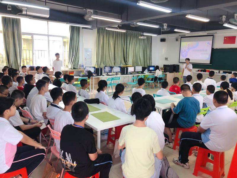 活動先由科創(chuàng)社團(tuán)負(fù)責(zé)人鄺洪勝老師介紹學(xué)校科創(chuàng)社團(tuán)概況。