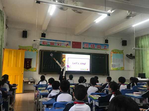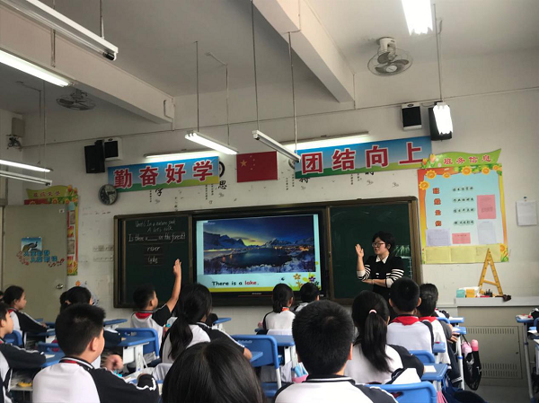甘麗瓊老師執(zhí)教的是一節(jié)五年級(jí)的對(duì)話課。本節(jié)課通過(guò)一個(gè)動(dòng)感的歌曲引入,巧妙地設(shè)置課堂主線,借助5E漸進(jìn)式教學(xué)模式帶動(dòng)學(xué)生積極參與到每個(gè)教學(xué)活動(dòng)中,課堂氣氛活躍。課堂的最后,甘老師及時(shí)對(duì)學(xué)生進(jìn)行環(huán)境保護(hù)教育,把德育教育滲透到英語(yǔ)課堂中。