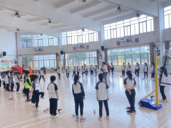 體育方面,田濤老師的授課內(nèi)容是《腳內(nèi)側(cè)踢毽球》,采用學(xué)生喜愛(ài)的游戲形式進(jìn)行導(dǎo)入和熱身,充分調(diào)動(dòng)學(xué)生學(xué)習(xí)的積極性和注意力。本課環(huán)節(jié)設(shè)計(jì)合理層層遞進(jìn),“手持球接力”“踢球入圈比多”等游戲貫穿課程,帶動(dòng)起學(xué)生們參與課堂的積極性。在練習(xí)中以學(xué)生為主體,積極引導(dǎo)學(xué)生主動(dòng)思考,創(chuàng)設(shè)小組合作探究解決問(wèn)題,增加練習(xí)組數(shù),讓學(xué)生能充分的體驗(yàn),真正讓學(xué)生體驗(yàn)到體育帶來(lái)的樂(lè)趣。