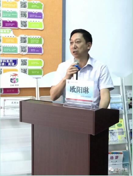 最后,由容桂街道教育辦基礎(chǔ)教育股歐陽效斌副股長講話。他指出,容桂育美教育集團(tuán)是集團(tuán)化辦學(xué)的試驗(yàn)田,承擔(dān)著許多在教育前沿領(lǐng)域探索與研究的任務(wù)。九所學(xué)校的“抱團(tuán)”不僅是“取暖”,而是為了尋求發(fā)展。他期盼,育美集團(tuán)以名師工作室、青藍(lán)工程為重要抓手,不斷壯大優(yōu)秀教師的隊(duì)伍,讓育美集團(tuán)走得更高、更遠(yuǎn)。