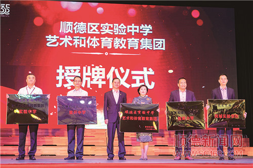 順德區(qū)實(shí)驗(yàn)中學(xué)藝術(shù)和體育教育集團(tuán)授牌儀式。/珠江商報(bào)記者朱德文攝