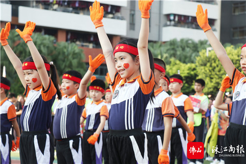 順德養(yǎng)正學校操場上,伴隨著鏗鏘有力的踏步聲,聽著清脆洪亮的口令聲,英姿颯爽的國旗護衛(wèi)隊手舉鮮艷的五星紅旗莊嚴入場,場面莊嚴肅穆,展示了師生們濃濃的愛國情懷。升旗儀式后,第十五屆校運會在歡騰的校園里拉開了序幕。