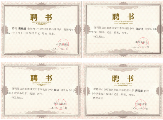 為拓展校園信息傳播途徑、豐富學(xué)生文化生活內(nèi)涵,更好地發(fā)揮《中學(xué)生報》的權(quán)威宜傳導(dǎo)向和窗口作用,2021年1月18日,《中學(xué)生報》為我校授牌“校園小記者站”,聘任校園通訊員,發(fā)展校園小記者站項目。
