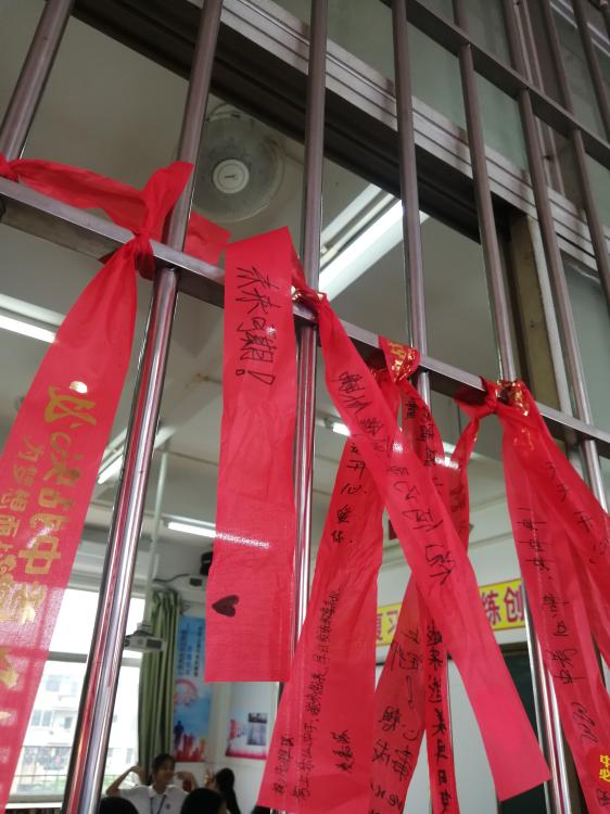 君中是一個(gè)很有愛(ài)的大家庭,奮斗的路上,我們從來(lái)都不會(huì)寂寞。同學(xué)們?cè)诩t絲帶上寫(xiě)上對(duì)自己最想鼓勵(lì)的一位同學(xué)的祝福并親手送給對(duì)方,收到祝福的同學(xué)把紅絲帶系到走廊窗戶(hù)上。慢慢地,初三級(jí)的走廊就變成紅色的海洋,微風(fēng)不時(shí)吹過(guò),撩動(dòng)的是少年的心……放眼望去,還發(fā)現(xiàn)年級(jí)走廊的移動(dòng)黑板展示著2019屆君蘭中學(xué)卓越班送給2020屆君蘭初三學(xué)子的祝福――《奔涌吧,后浪!》!