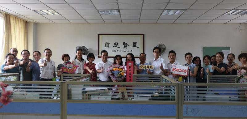 在辦公室,王光書記向高三教師代表、駐級行政宋玉琦主任、曾學(xué)鑫級長獻上代表成功的鮮花,并向奮戰(zhàn)在高三一線的教師表達(dá)了誠摯的慰問。