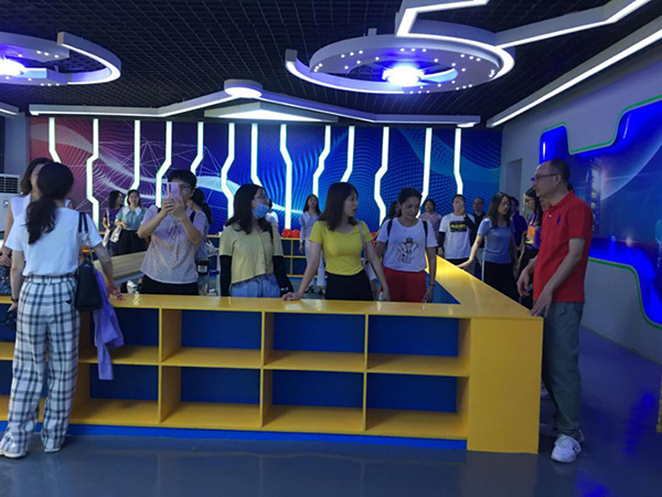 其次,一行人參觀了我校“創(chuàng)客城”,創(chuàng)客城科幻的設計,吸引了他們的目光,在參觀過程中,譚優(yōu)生校長結(jié)合學校實際,全面、細致地介紹了我?!皠?chuàng)客城”建設與開展活動的情況。來訪的教師對我校“高大上”的“創(chuàng)客城”所體現(xiàn)出來的“科創(chuàng)”文化元素給予了高度贊譽。