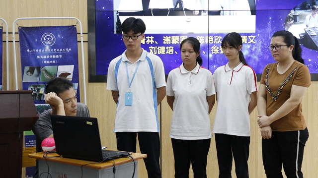 (順德區(qū)科學(xué)技術(shù)協(xié)會(huì)副秘書長(zhǎng)徐婷婷、我校副校長(zhǎng)熊東升、葉旭飛參加本次活動(dòng))