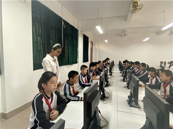 首先,評估專家“推門”深入課堂聽課,隨機(jī)聽取了語文、數(shù)學(xué)、音樂等課堂教學(xué),深入了解教師教學(xué)和學(xué)生課堂學(xué)習(xí)的開展情況。語文課上,梁健欣老師結(jié)合學(xué)校“學(xué)導(dǎo)練”互助教學(xué)模式展示小組互助學(xué)習(xí),充分發(fā)揮學(xué)生的學(xué)習(xí)主體性,創(chuàng)設(shè)以生為主的互助課堂;數(shù)學(xué)課上,張綺雯老師創(chuàng)設(shè)精彩的足球比賽情境,放手讓學(xué)生以小組為單位進(jìn)行探究、討論、展示,充分展示了“學(xué)導(dǎo)練”互助教學(xué)課堂;音樂課上,肖曉虹老師引導(dǎo)學(xué)生圍繞“彩虹”的特點,通過猜謎語、七色光的描述、伴唱、二聲部的演唱等環(huán)節(jié),與學(xué)生們共同演唱了“七色光之歌”,滲透積極向上的陽光教育,體現(xiàn)了奮揚學(xué)?!白屆恳粋€生命都沐浴陽光”的辦學(xué)理念。教師的循循善誘,活躍的課堂氣氛、學(xué)生們自信而大方的表現(xiàn),給評估組專家留下了深刻的印象。