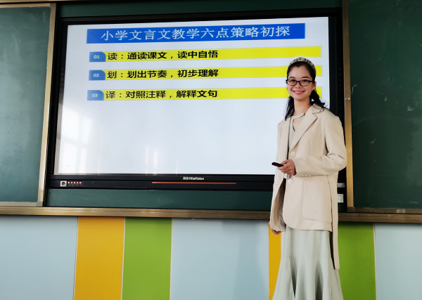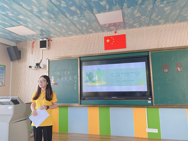 緊接著,北海小學(xué)甘容老師、梁毅鈺老師作代表,分別圍繞“小學(xué)文言文教學(xué)六點(diǎn)策略初探”和“文言‘序’學(xué)”這兩個主題分享教學(xué)心得。本次分享起到了一個拋磚引玉的作用,為接下來的小古文教學(xué)提供了一個新的思考方向。