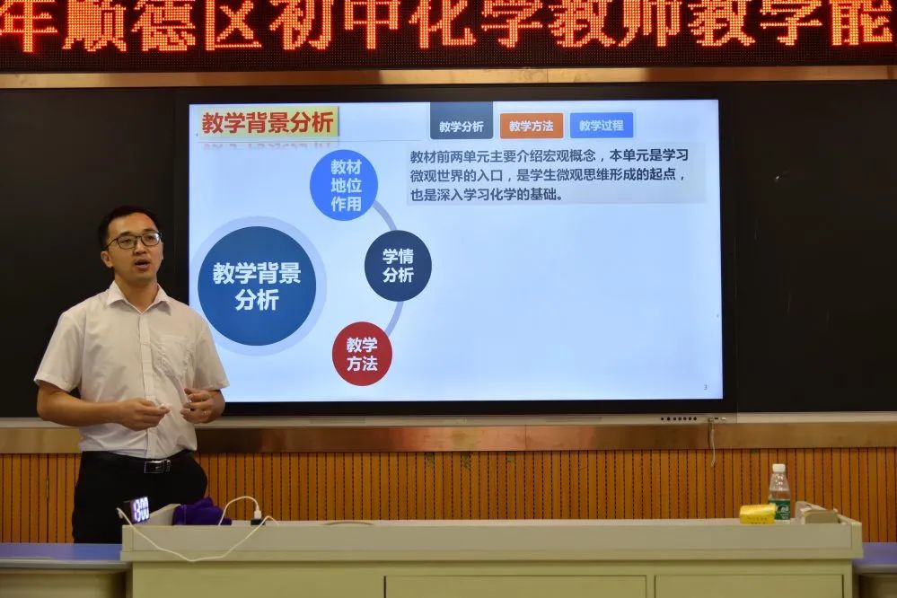 初中化學(xué)青年教師教學(xué)能力大賽分為兩個(gè)環(huán)節(jié):15分鐘的說播課和現(xiàn)場(chǎng)提問。選手們需現(xiàn)場(chǎng)講述教學(xué)設(shè)計(jì),并播放提前錄制的實(shí)際教學(xué)視頻片段,隨后進(jìn)行教學(xué)自評(píng)和反思,簡(jiǎn)短而精煉地展示其選課的教學(xué)思路和實(shí)際教學(xué)效果。