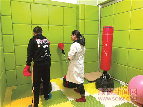 針對不同學(xué)員的情況,工場制定了個性化的康復(fù)計(jì)劃。陳姑娘介紹,面對壓力大,情緒不穩(wěn)定的學(xué)員,康復(fù)治療師在進(jìn)行具體的康復(fù)評估,了解其具體情況后,為其設(shè)定了拳擊訓(xùn)練,在安全前提下,讓學(xué)員通過任意擊打的方式,來進(jìn)行情緒舒緩;部分學(xué)員由于失眠,導(dǎo)致情緒不穩(wěn)定,出現(xiàn)煩躁、心情郁悶的情況,康復(fù)治療師則采取音樂治療結(jié)合體感音樂治療床進(jìn)行康復(fù)訓(xùn)練,利用舒適的睡眠環(huán)境和輕快的音樂令學(xué)員的情緒得到安穩(wěn),助其入眠;在恒常培訓(xùn)中,有學(xué)員會出現(xiàn)專注力不夠、對工作沒耐心的情況,康復(fù)治療師推出堆積木的訓(xùn)練來提高學(xué)員的專注力與耐心;具有情緒障礙的學(xué)員同時也會出現(xiàn)急躁、不安的狀態(tài),嚴(yán)重影響正常的工作與生活,康復(fù)治療師又設(shè)置了畫畫訓(xùn)練課,希望舒緩學(xué)員的情緒。