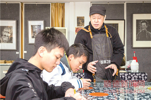 學(xué)生在刻版。/珠江商報(bào)記者林安迪攝